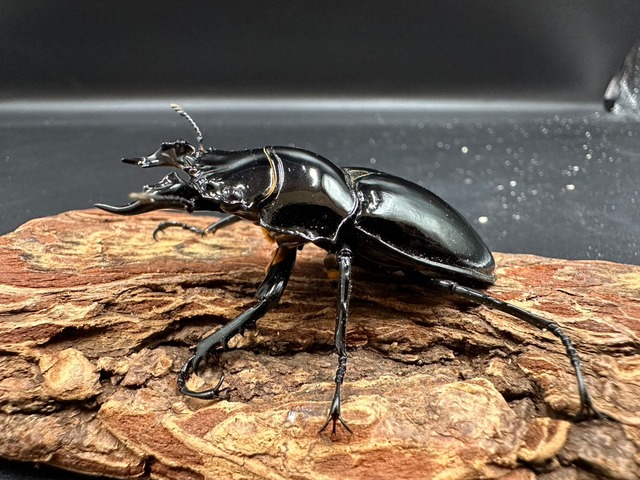 【CBF1】《タランドゥスオオツヤクワガタ(0224) ♂ 57mm / ♀ 47mmペア》 ※写真が対象個体となります。 名称:タランドゥスオオツヤクワガタ 学名:Mesotopus tarandus 産地:コンゴ 累代:CBF1 サイズ:♂ 57mm / ♀ 47mm 羽化日:♂♀26年2月 後食:♂♀未後食 【むしChaku・Laboのご案内】 当店では死着保証は行っておりませんので、ショップからの返金対応はしておりません。 しかし、死着時のトラブル防止として、死着証明・買取サービス(むしChaku・Labo)のご利用を推奨しております。 死着が不安な方は、生体をご購入後にこちらのサービスをご利用いただくと安心です。 https://mushichaku.com 《タランドゥスオオツヤクワガタについて》 コンゴに生息するオオツヤクワガタです。 顎も含め全身が強い黒艶で覆われており高級感の溢れる雰囲気を持っています。 成熟すると♂はバイブレーションをするというオオツヤクワガタ特有の行動をします。 顎は太くとても力が強いので挟まれないように気をつけましょう。 産卵は植菌材、菌床産卵が主流です。 穿孔して産むので材はLサイズ以上を使いましょう。 一度で10〜15個位産み、♀は穿孔した入口に居座り卵を守ります。 数を採りたい時は♀を回収して次のセットへ投入します。 幼虫はカワラ菌床で育てるのが主流です。 幼虫の成長は早く♂♀ともに大型でも1年かからず羽化します。 被膜が好きで外側から食べるので3分の2位食べたら交換するようにしましょう。 ↓↓↓ 以下、必ずお読みください。 ↓↓↓ 【生体販売注意事項】 ・累代表記がWDの生体は天然採集個体のため羽化日がわかりませんので、産卵セットを組まれる方は出来るだけ早く組むことをお勧めいたします。(天然採集個体のため傷、ダニの付着がある場合がございます。) ・店頭と併売しておりますので、売り切れの際はご容赦ください。 ・特別な事情やトラブルがない限り、注文から3営業日以内に発送準備をさせていただきます。 ・生体の基本送料は一部地域を除き、1,000円(北海道・九州は1,500円、沖縄は2,000円)となっております。 お得に生体をご購入して頂くためには、生体の送料に限り基本送料1,000円(北海道・九州は1,500円、沖縄は2,000円)にて何頭でも同梱致します。(発送サイズや個数が増えても、金額は基本送料でお届けいたします。) ・埼玉県川口市よりヤマト便にて発送いたしますので、配送期間が2日以上かかる地域への配送は死着のリスクが上がる事がございます。 気温が高すぎたり低すぎたりする時期の購入はご注意ください。 ・生体用の発泡容器への飼育用品の同梱は、基本的には行っておりません。 ・生体の発送は、季節により発泡容器に保冷剤・カイロを入れて発送致します。 ・配送希望日をご指定される場合は、BASEのメッセージ機能にて、希望日・時間帯を第3希望まで教えてください。 ・死着補償ありませんので、あらかじめご了承ください。 ・万全を期して発送しますが、輸送中のグレードダウンについてはご了承ください。(発送前に必ず検品を行いますが、傷やディンプル等は写真でご確認してご購入ください。) ・ノークレーム、ノーリターン、ノーキャンセルでお願い致します。 ※放虫禁止。責任を持って飼育お願いします。 【飼育用品の配送について】 ・送料込みの商品を除くすべての商品は、重量計算で自動的に箱の個数を決定致します。 1箱あたりの送料は全国一律(沖縄県・北海道は別料金)1,500円です。 1箱当たり重量15キロ以内の梱包になりますので、15キロを上回る注文は30キロまで2箱・45キロまで3箱となります。その場合は箱の数×1,500円の送料が自動計算されますのでご了承ください。 ・送料計算用の重量は、商品の大きさにより実際の重量より重く設定させて頂いております。配送用の段ボール内の容量を占有するサイズの大きな飼育ケース等は、実際の重量を大きく上回る重量設定とさせて頂いております。 【返品について(飼育用品)】 ・万が一不良品や品違いであった場合は、商品到着後3日以内に弊社にご連絡の上、送料着払いにてご返品後、良品と交換もしくは返金いたします。 ・お客様都合による返品・交換は承りかねます。 【返品について(生体)】 ・基本的に、返品・交換は承りかねます。 ・配送トラブル(破損や遅延等での死着の場合)での死着の場合は到着時点での写真を添付頂き、到着日にメールでご連絡いただければ返金対応させて頂きます。(梱包容器の破損がわかる写真と生体の状態の写真を添付ください)。 配送遅延の場合は到着日をお知らせください。配送会社へ確認後返金対応させて頂きます。 ※その他ご購入に関してご不明な点がございましたら、お気軽にメールにてお問合せください。 [email protected]