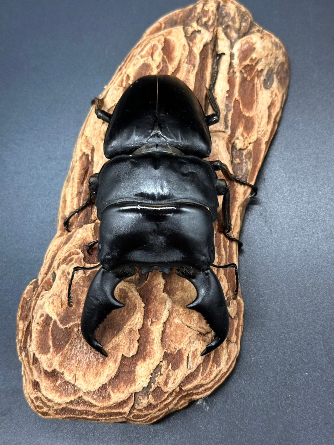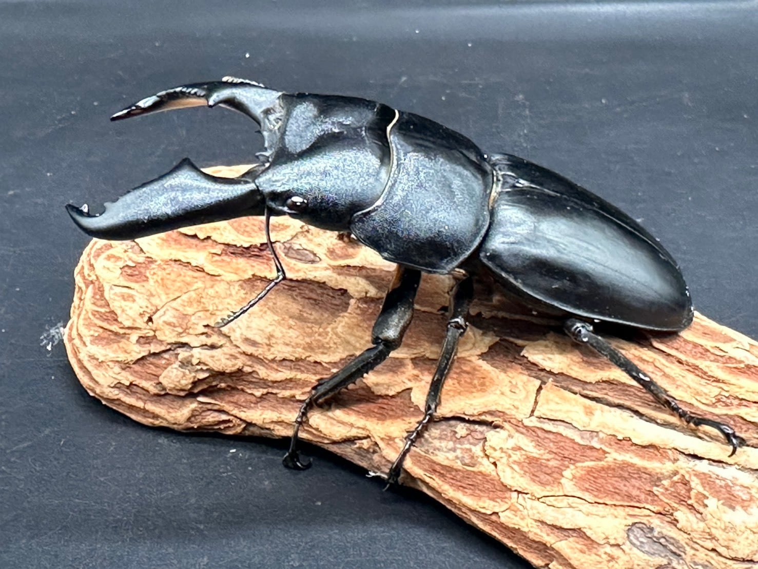 非常に人気で有名な外国産クワガタの代表種。太いからだと大あご、大きな体と迫力のあるクワガタです。