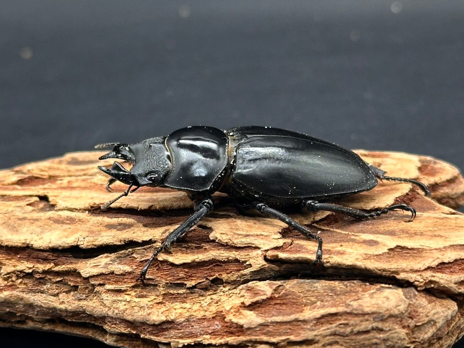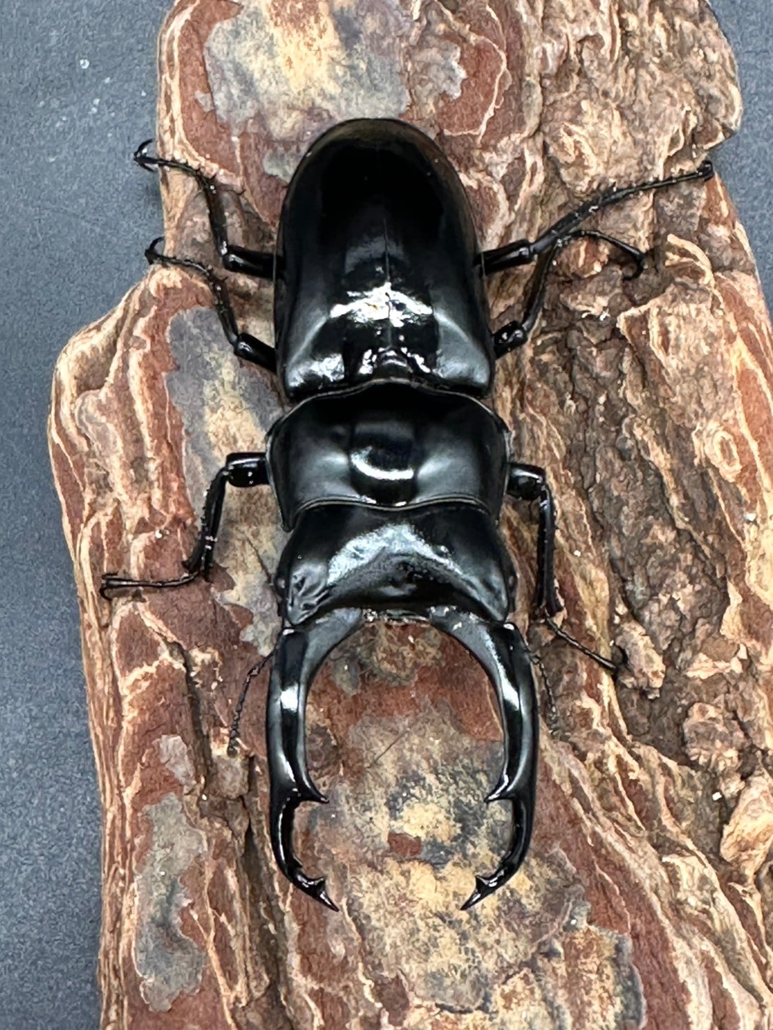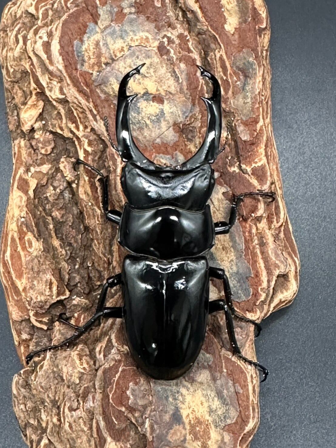 黒く艶のある体と長く大きく発達した大顎がかっこいいクワガタです。