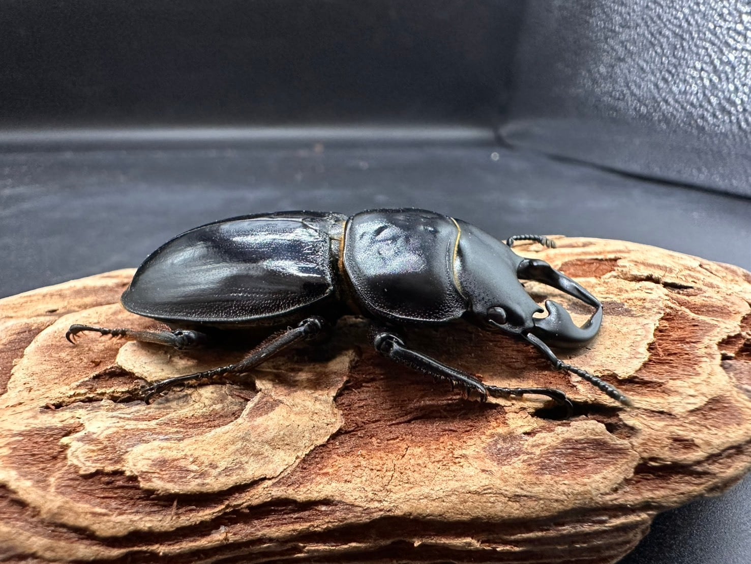 体型が国産のオオクワガタと似ていますが内歯がほぼ横を向くのが大きな違いです。