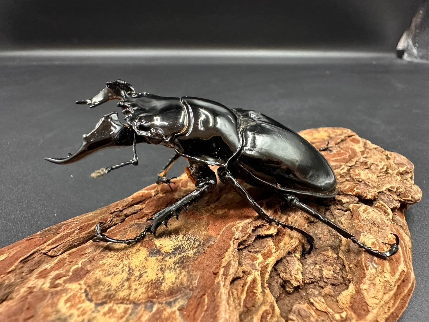 顎も含め全身が強い黒艶で覆われており高級感の溢れる雰囲気を持っています。