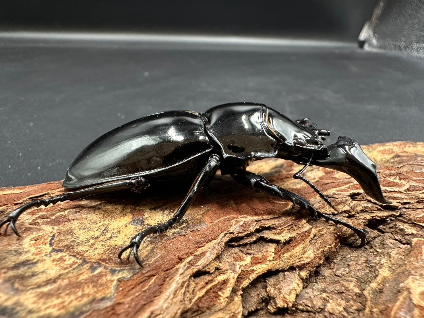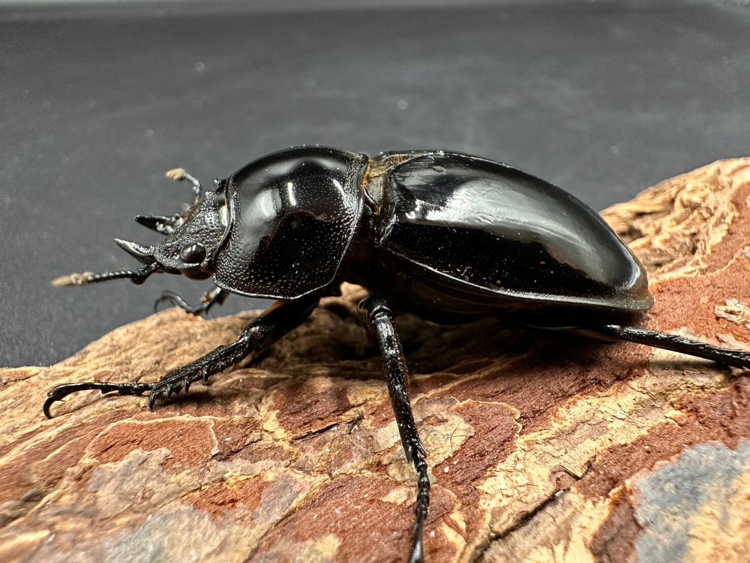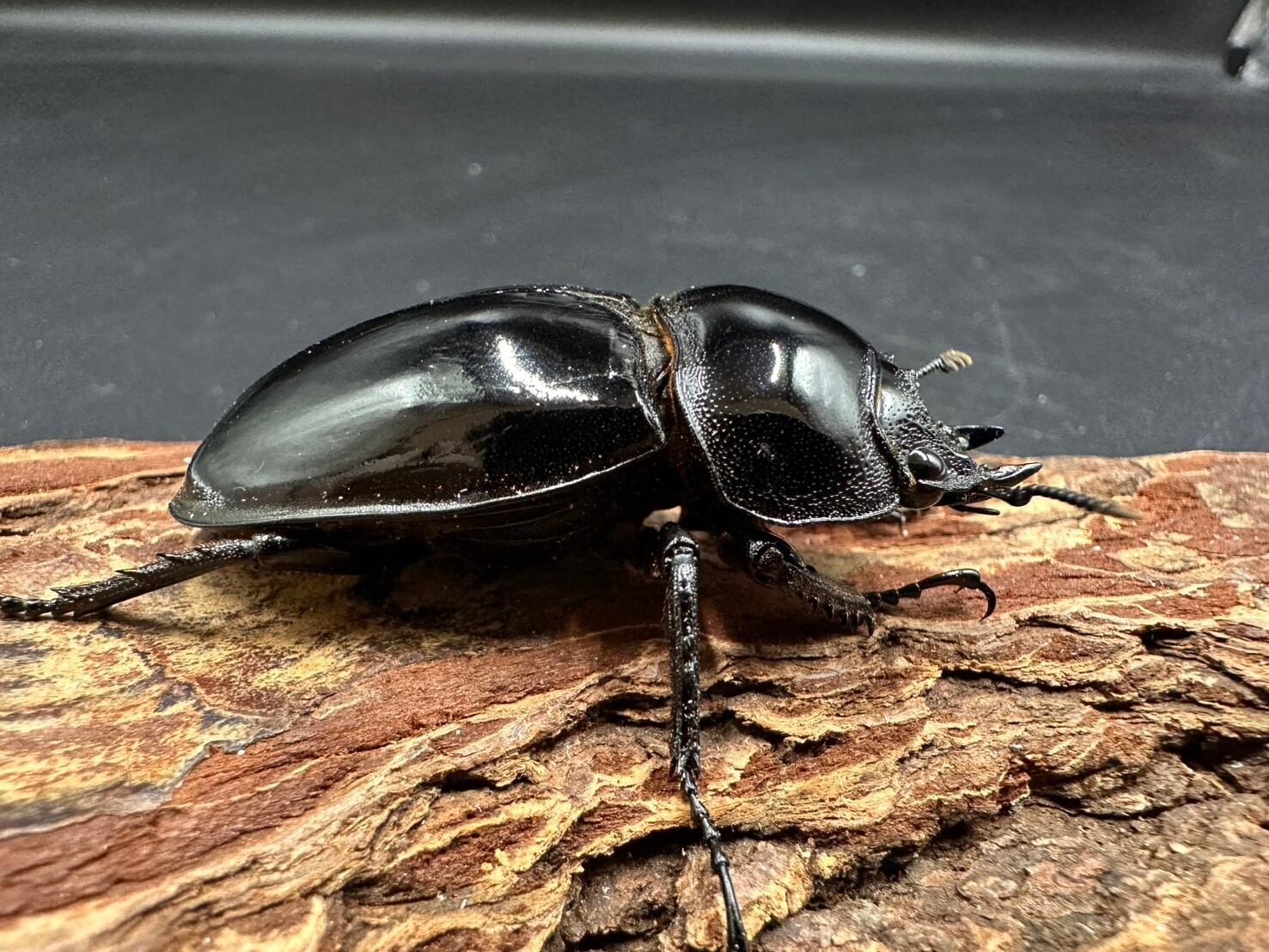 顎も含め全身が強い黒艶で覆われており高級感の溢れる雰囲気を持っています。