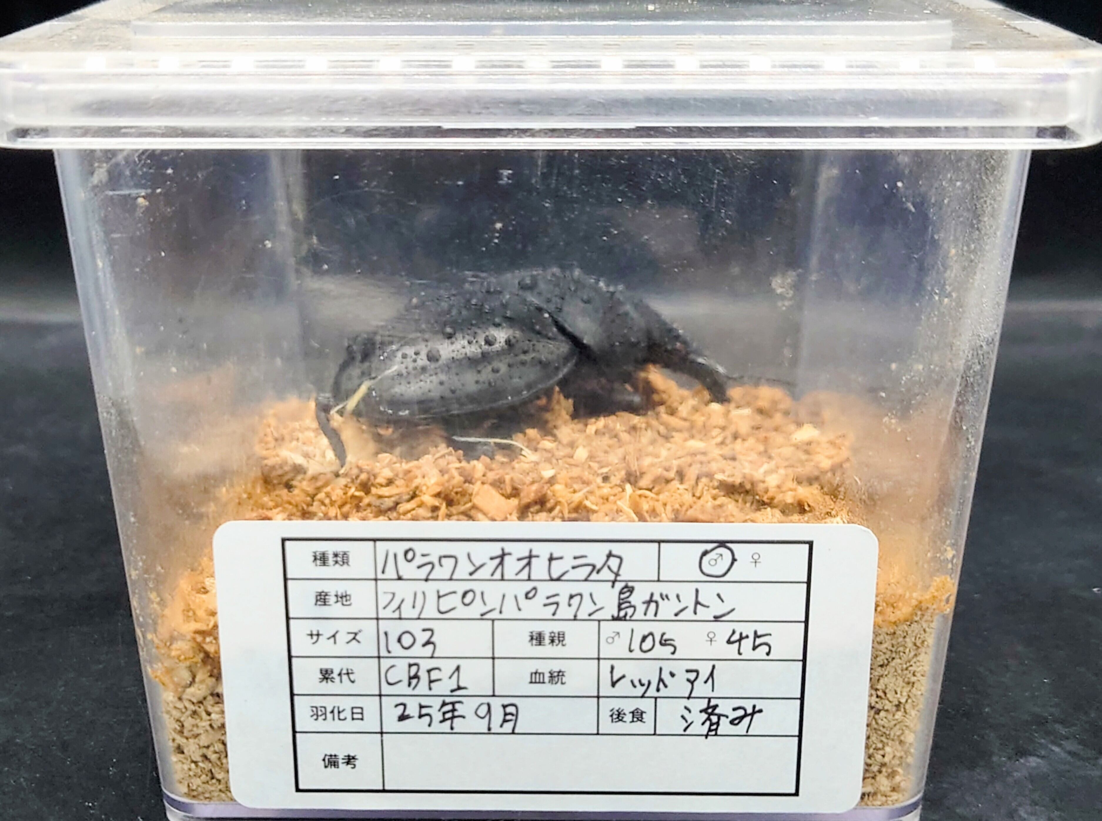 ・累代表記がWDの生体は天然採集個体のため羽化日がわかりませんので、産卵セットを組まれる方は出来るだけ早く組むことをお勧めいたします。(天然採集個体のため傷、ダニの付着がある場合がございます。)