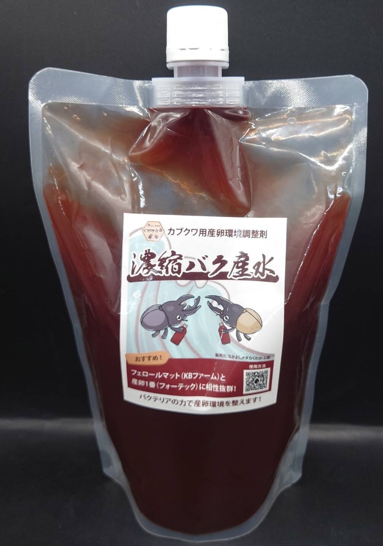本製品はマット内にバクテリアを加えることで幼虫の餌が豊富にあると♀に認識させ、産卵を促進する効果があります。十分に使い古した産卵用マットも蘇ります。実際に様々なカブトムシ、クワガタで検証した結果、効果を実感できました。フェロールマット、産卵一番と特に相性がよく、産み渋っている個体やたくさん産んでほしい生体にご活用ください。バクテリアは幼虫の餌にもなるので、初令幼虫が安定して育つ環境を作ります。マットに加えて材を入れることで、バクテリア材の作成も可能です。